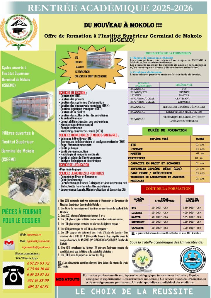 Découvrez les nouvelles filières et leurs débouchées à ISGEMO pour le compte de l'année académique 2025/2026.